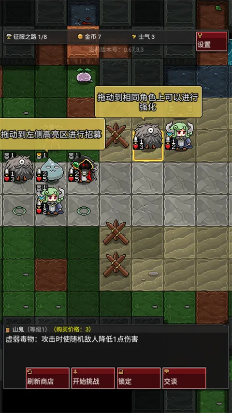4、之后拖动相同的角色可以进行升级来提升属性。