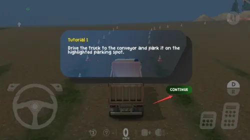 1、点击绿色继续按钮,推进卡车驾驶教程。
