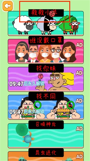 2、在模式选择界面中,找到并点选名为"救救小羊"的趣味玩法。