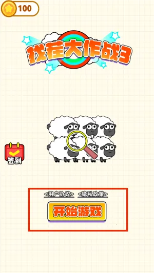1、进入游戏后,首先点击主界面中央的"开始"按钮进入模式选择。