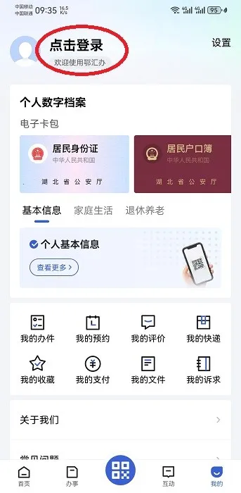打开鄂汇办手机 APP,点击右下角“我的”选项;