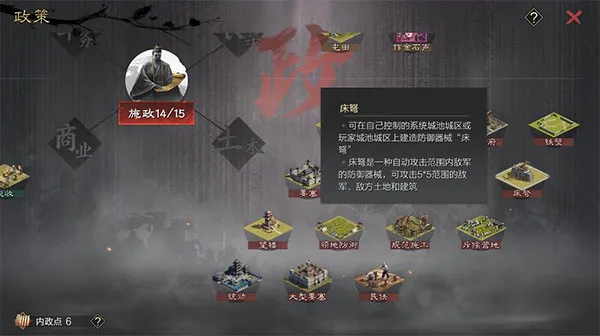 游戏中的器械用法多样且讲究。吕公车可载兵攻城,太守能造;考公府可造多种器械;垒巢可快速踩地起要塞;霹雳能攻击敌方地块;飞桥用于跨河打击;武冲可无损翻地;铁壁能给土地减伤;床弩可自动攻击敌军;望楼玩法有更新。