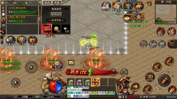 1. 百人同屏激战,复古画风带你重回热血传奇岁月,与兄弟并肩攻占沙城。