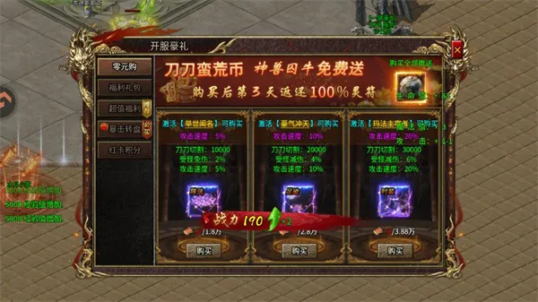 5、开荒好礼、超值投资、月卡均为超长线收益并且提供大量居性,解放双手
