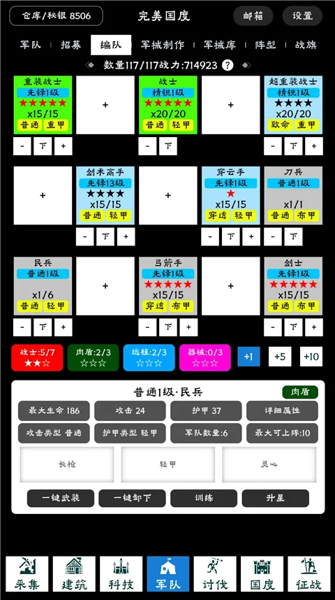 在兵种方面,前期弓箭手、战士、重战士各有作用,能积累资源经验;中期银月、重装战士实力提升,成为战斗主力;后期高级军官更是核心力量。基建攻略详细,分阶段提升建筑等级,推动国家发展。