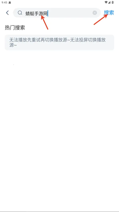 2.输入你要看的影视剧名称。点击搜索