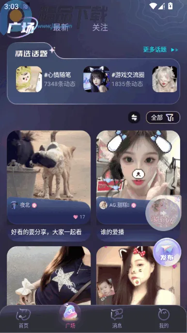 3. 广场话题:凭借多元话题结识同好,用户能参与各类热门讨论,分享生活点滴,倾诉内心想法,寻觅志同道合的伙伴。